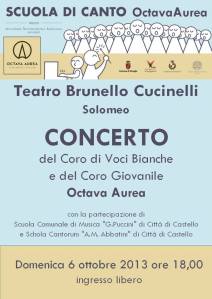 30.9.2013 – Domenica 6 ottobre la Scuola di canto dell’Associazione “Octava Aurea” si presenterà ufficialmente con un concerto di apertura. Appuntamento alle 18.00 al Teatro Cucinelli, in Solomeo.