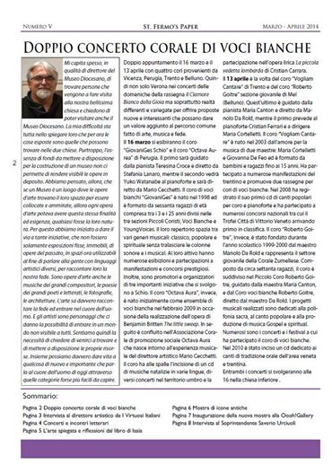16.3.2014 – Partecipazione alla Rassegna Corale “Il Clamore Bianco della Gioia”, Verona, Chiesa di San Fermo Inferiore, ore 16.00. Piano: Yuko Watanabe. Direttore: Mario Cecchetti.