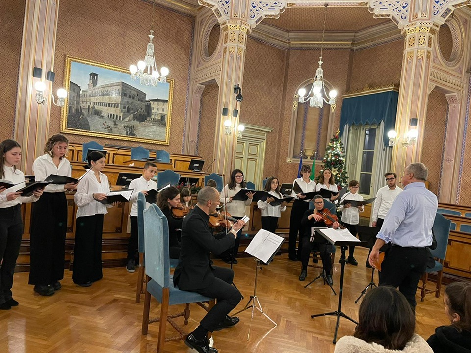 10.12.2022. Concerto di Natale. Concerto del Coro giovanile e voci bianche “Octava Aurea”. Direttore del Coro “Octava Aurea”: Mario Cecchetti. Pianoforte: Mailis Pold. Preparatrice Vocale: Catharina Scharp. Sala del Consiglio della Provincia di Perugia.